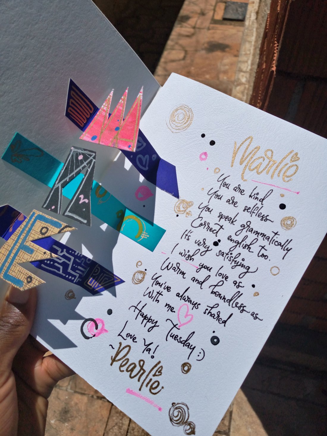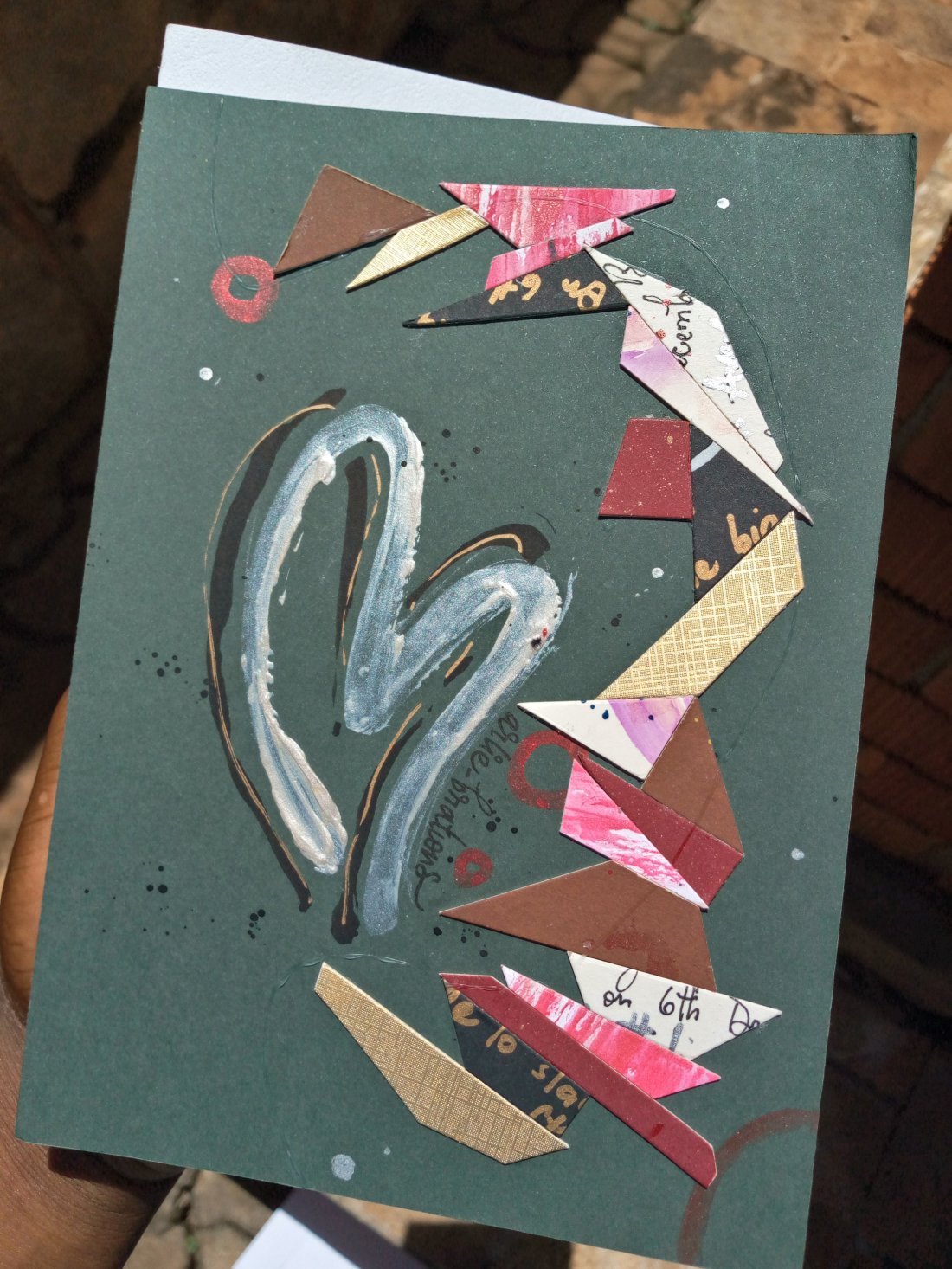 With age, my mind grows wiser. I applied the suspenders’ technicality with several glued cut board pieces glued in an indefinite shape but yet beautiful and special! This particular card takes lots of hours to manufacture but it makes me so proud I get to wish I was the one receiving it! This is a brief of what will be a global movement one day! What makes my art different is; it carries an impactful power to keep those involved united.