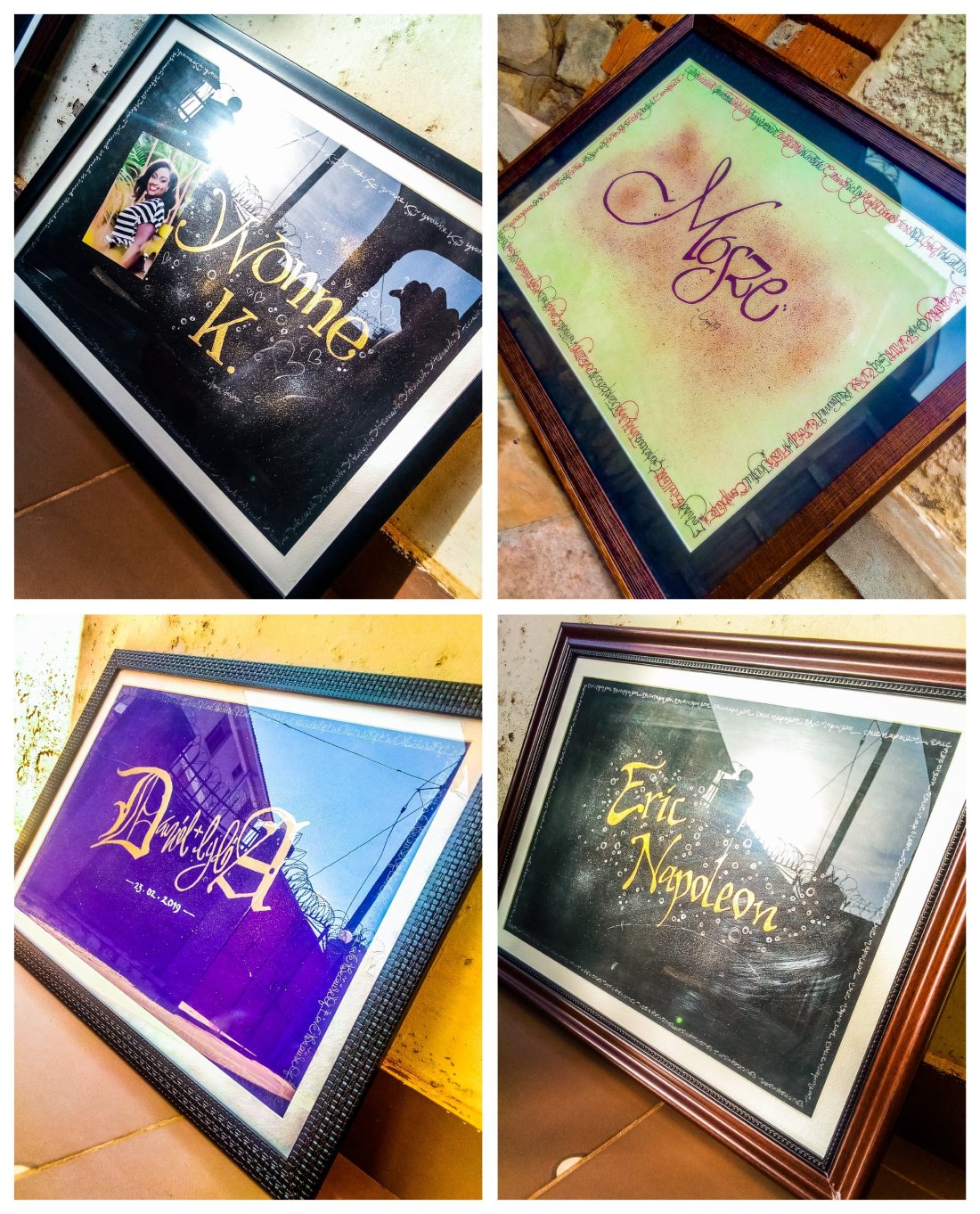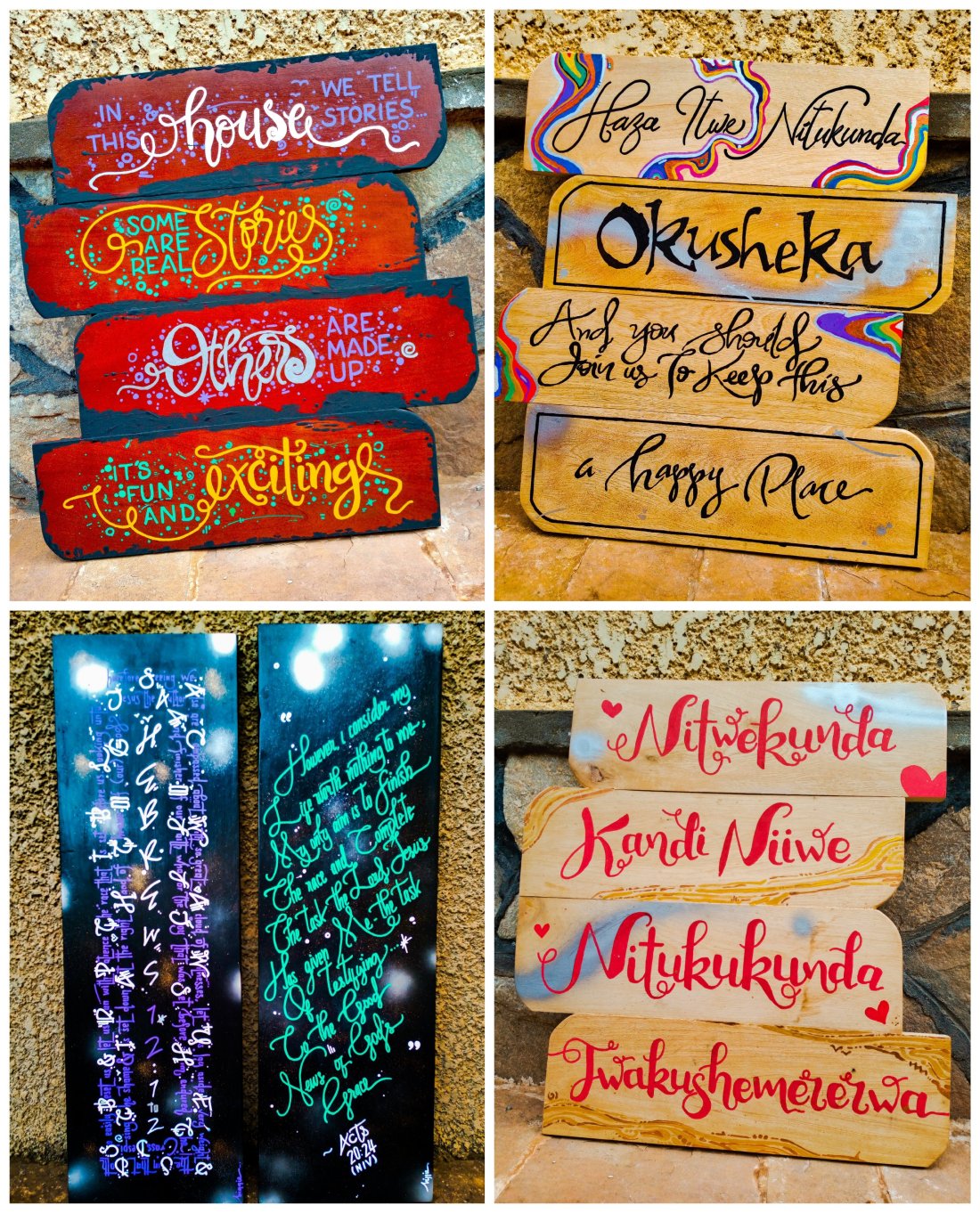 These are my favorite! They take days or weeks to complete. They require uttermost diligence! The process goes from planning out the board, spacing, sketching and finally carefully writing the words, painting whatever needs to.