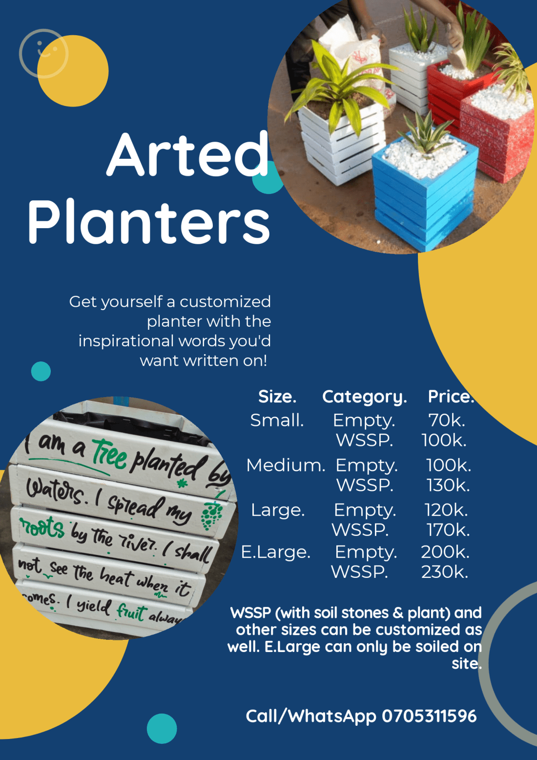 Just a few weeks back, He presented to me an idea of another franchise to my art business. I never despised it! I quickly named it and put it out there… A friend makes planters, and all I do is add art to them.